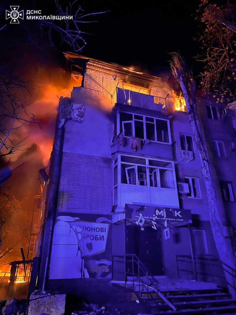 У Миколаєві пʼятеро людей загинули унаслідок атаки дронами. Сталось руйнування та пожежа приватного одноповерхового будинку, а також руйнування квартири на четвертому поверсі та пожежа на четвертому та третьому поверхах чотириповерхового будинку.