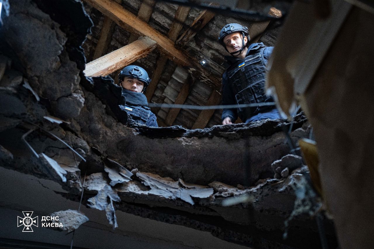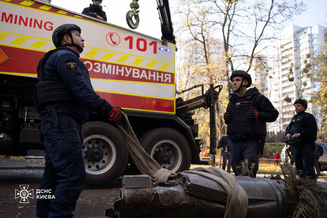 Спасатели изъяли часть вражеской ракеты из жилого дома в Печерском районе Киева (ФОТО)