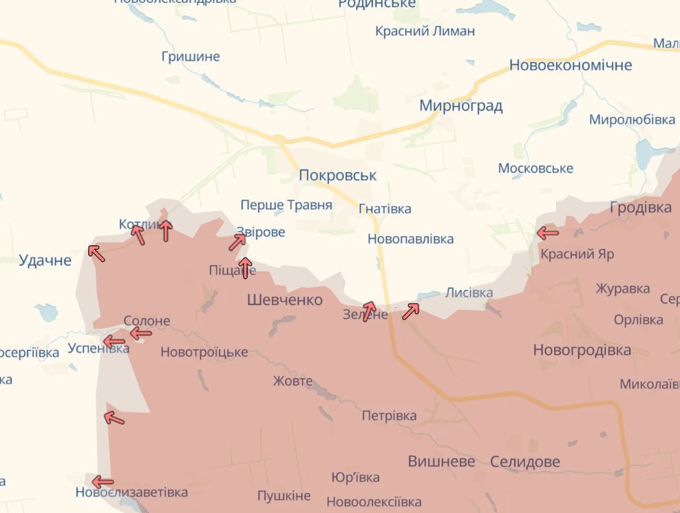 На південь від Покровська ворог веде активні штурмові дії на Удачне та Котлине.