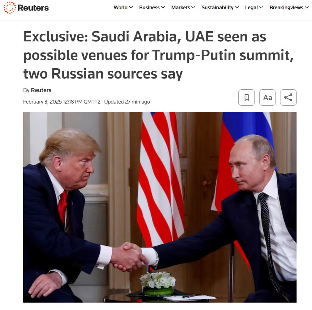 https://racurs.ua/n203748-u-moskovitov-est-dva-varianta-mesta-vstrechi-putina-i-trampa.htmlРакурсСаудівська Аравія та ОАЕ розглядаються Росією як можливі місця проведення зустрічі Дональда Трампа і владіміра путіна.
