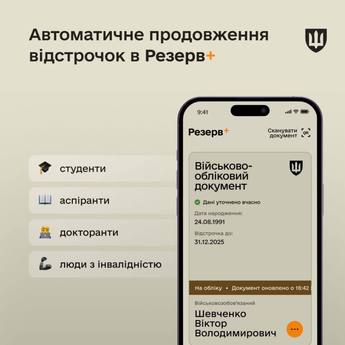 Спочатку функція працюватиме для тих відстрочок, які були оформлені через Резерв+. Тобто для людей з інвалідністю, які мають посвідчення Пенсійного фонду, а також для студентів, аспірантів і докторантів, — зазначила Черногоренко.