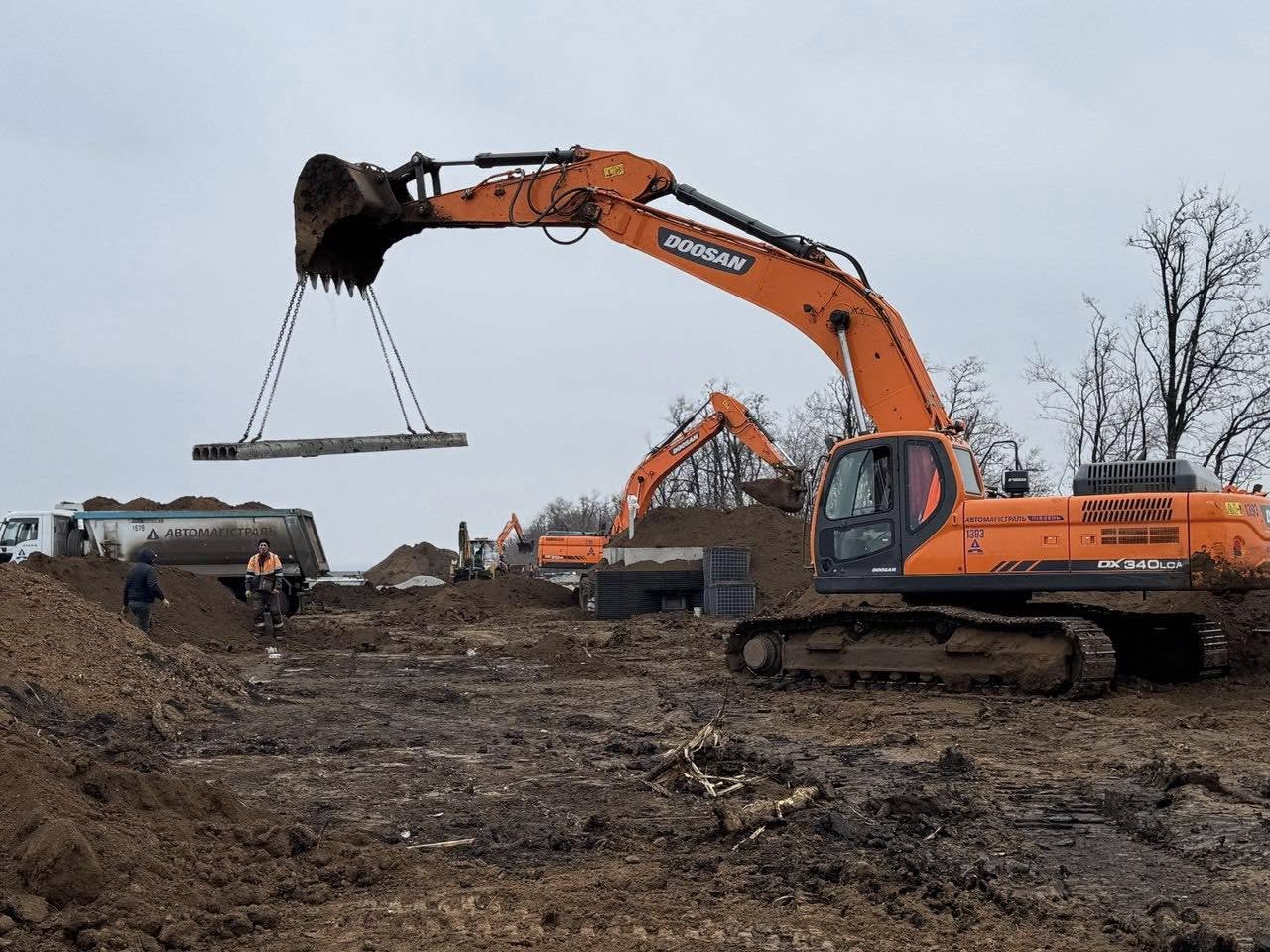 Роботи ускладнювала дощова погода та регулярні атаки з повітря. Російські дрони постійно полювали за технікою та людьми будівельників.
