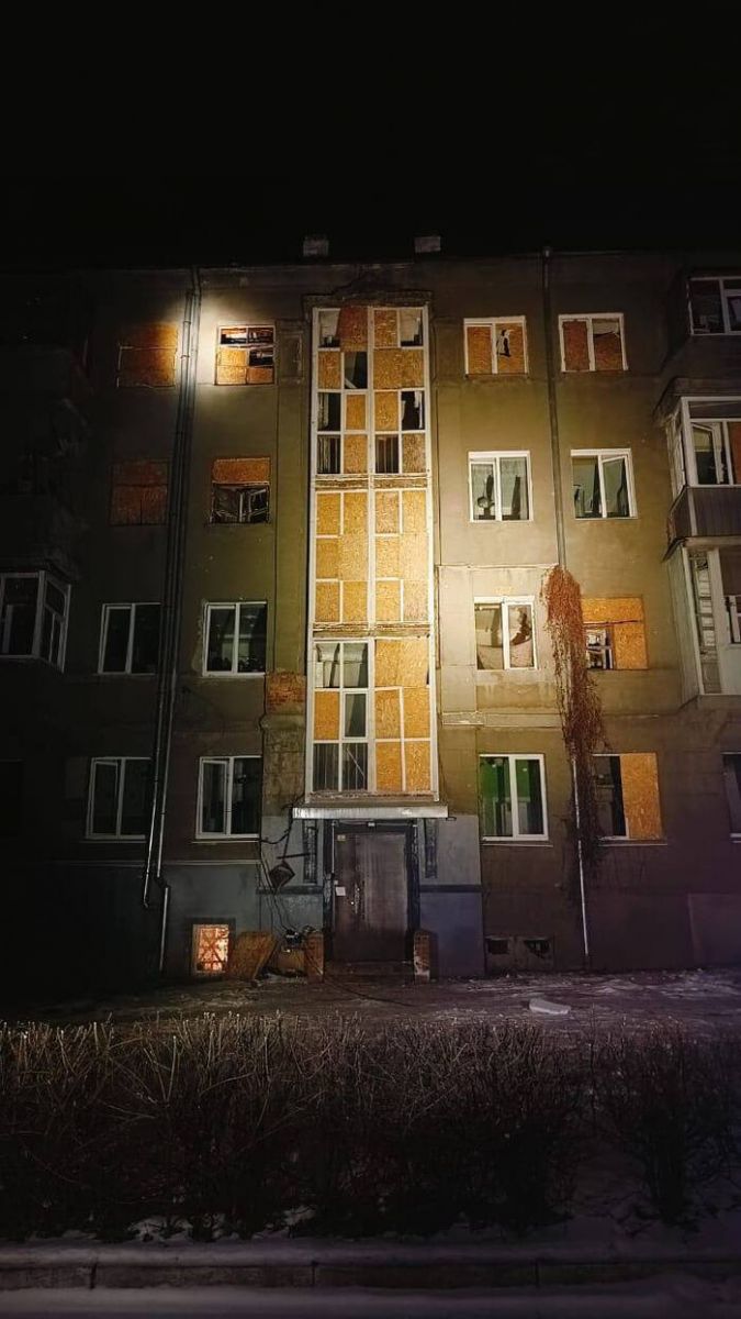 - о 00.30 внаслідок влучання уламків БПЛА «Герань» в тротуар пошкоджено скління багатоквартирного житлового будинку, будівлю кафе та контактну мережу тролейбуса. Без постраждалих.