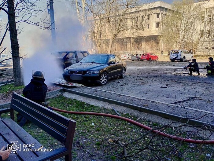Последствия российского авиаудара по Херсону, фото: Нацполиция
