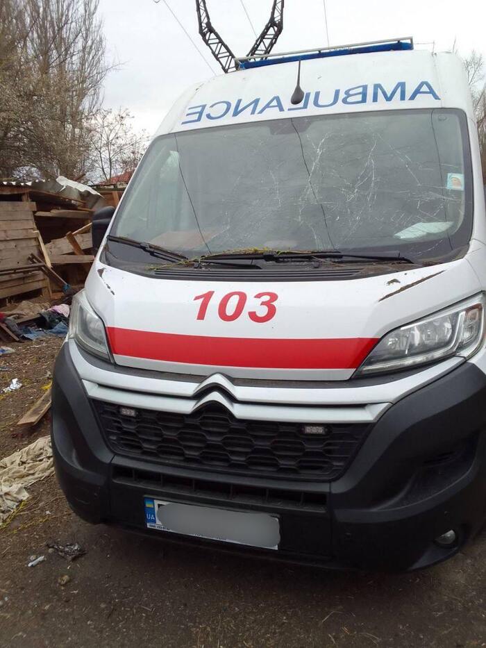 Також під російський обстріл потрапила бригада «швидкої», яка допомагала пораненому.