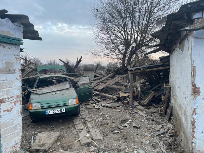 Последствия российских обстрелов Новорайска, фото: Херсонская ОВА