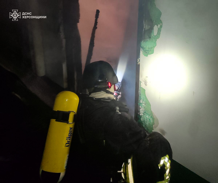 Российский беспилотник ударил по многоэтажке в Херсоне — выгорелая квартира (ФОТО)