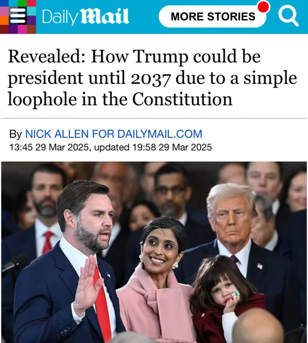 Таким чином, Трамп міг би балотуватися на посаду віцепрезидента, а Венс на президента. Після складання присяги Венс може піти у відставку, дозволивши своєму віцепрезиденту Трампу обійняти його посаду.