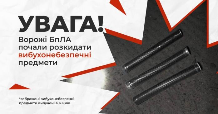 На фото, яке опублікували правоохоронці, зображено, як можуть виглядати ці вибухонебезпечні предмети. Вибухонебезпечний предмет схожий на трубу з квадратними насічками на корпусі. Діаметр близько 5 см, адовжина становить 35−40 см.