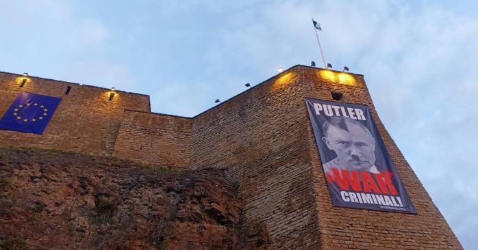 Музей Нарви, який від країни-терористки відділяє лише однойменна річка річка, робить це з 2023 року, розмістила на стіні Нарвського замку плакат, який порівнює путіна з лідером нацистської Німеччини Адольфом Гітлером. Про це 9 травня повідомляє ERR.