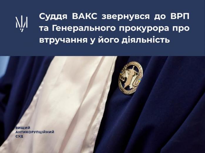 З огляду на вищевикладене, прошу вжити визначених законодавством України заходів реагування на втручання у мою діяльність як судді ВАКС у межах вашої компетенції, — резюмував Дубас.
