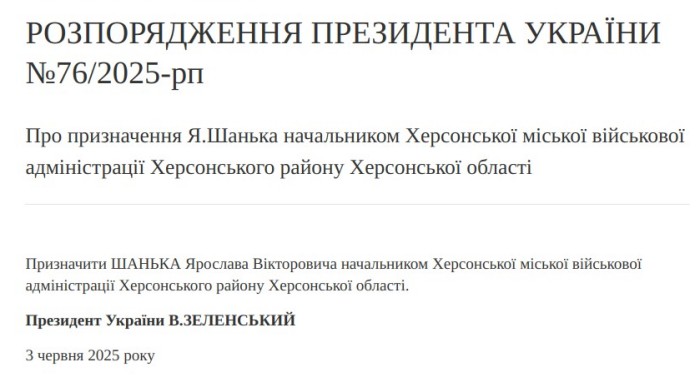 Про це йдеться в розпорядженні № 76/2025-pп, опублікованому на сайті Офісу президента.
