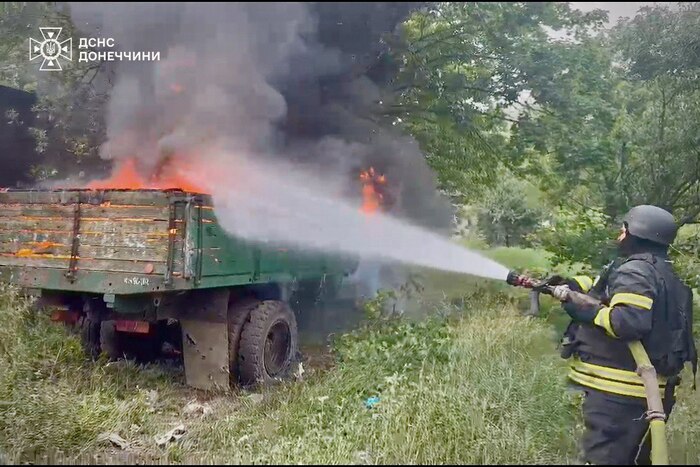 - у Костянтинівці ударний дрон поцілив у вантажний автомобіль. Рятувальники ліквідували пожежу;