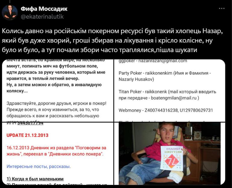 Також користувачі почали публікувати скріншоти про те, що Назарій раніше був зареєстрований на сайті з гри у покер та писав у своїх соцмережах про ставки.