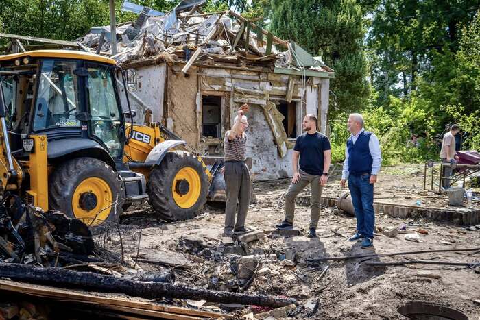 Також місто вже відвідав голова Київської ОВА Микола Калашник. На своїй Фейсбук-сторінці він зазначив, що будинки зазнали різних ступенів пошкоджень — від вибитих вікон і дверей до майже повної руйнації.