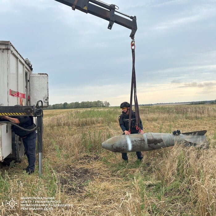 Нездетонированную авиабомбу обнаружили во время покоса травы на Харьковщине (ФОТО)
