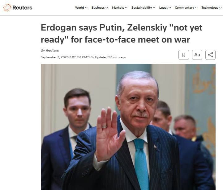 Президент Туреччини Реджеп Тайїп Ердоган під час переговорів у Китаї обговорив з Путіним шляхи завершення війни в Україні. Також він провів телефонну розмову з Зеленським. І після цього дійшов висновку, що обидва лідери «поки що не готові» до зустрічі. Про це пише Reuters.