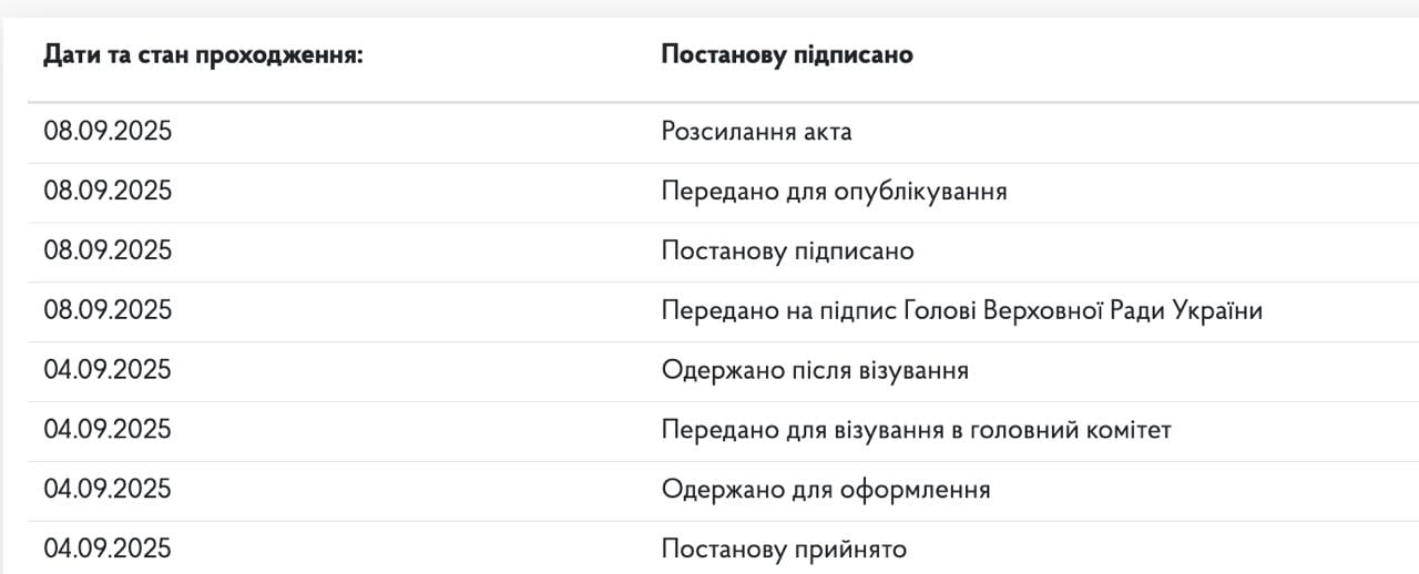 Про це сьогодні, 9 вересня, у своєму Telegram-каналі повідомив народний депутат Олексій Гончаренко з посиланням на дані картки законопроекту на сайті Ради.