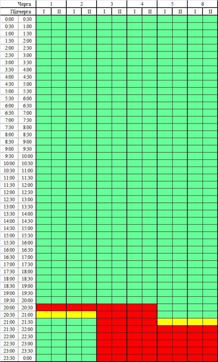 Задіяні в графіку будуть відразу чотири черги за «три години через шість» (три години зі світлом і шість годин без світла).