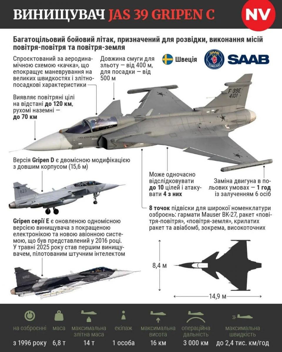 Зеленський також поінформував, що Україна продовжує готувати пілотів на шведські Gripen. І 2026 рік має стати початком використання цих літаків українськими Повітряними силами.
