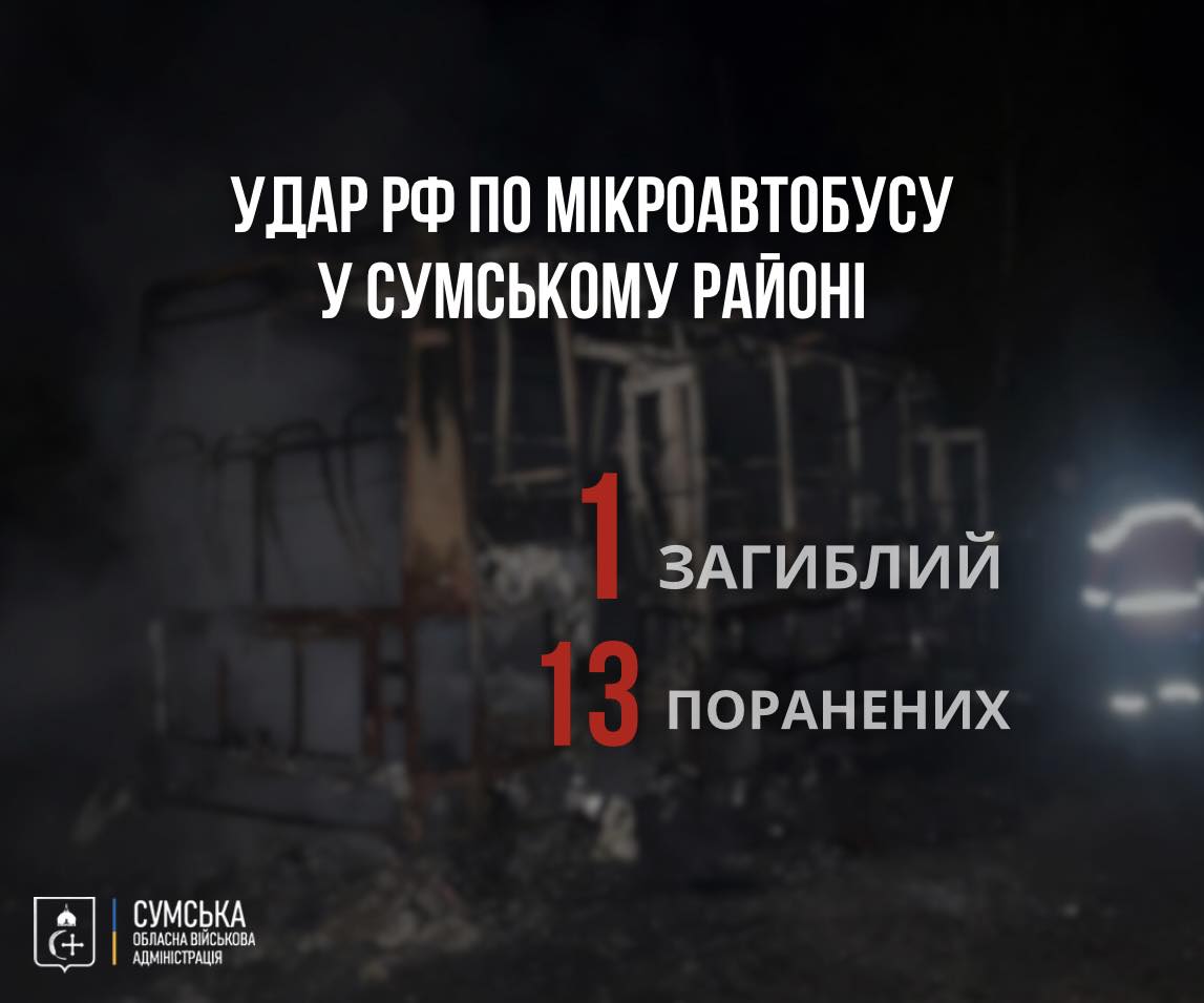 Россияне попали дроном в маршрутку на Сумщине — есть погибший и раненые