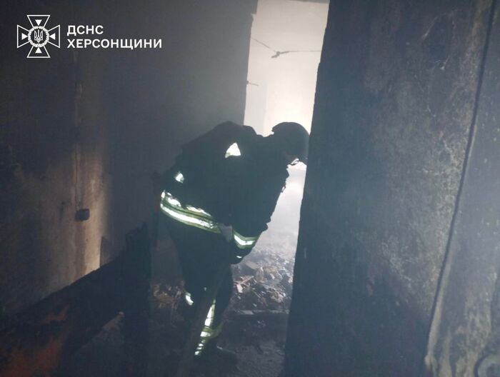 Российский обстрел вызвал пожар в многоэтажке в Херсоне (ФОТО)