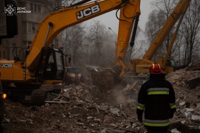 Рятувальники працюють безперервно, розчищають зруйновані конструкції, вивозять уламки та шукають людей — тих, хто міг опинитися в зоні руйнувань, — розповіли у відомстві. — За цей час розібрано 880 кв. м зруйнованих конструкцій і вивезено 370 тонн будівельних уламків.