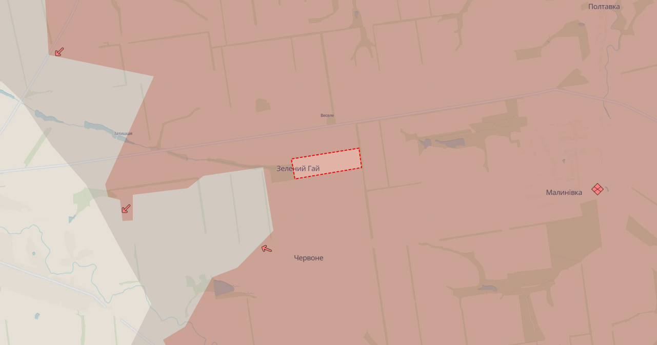 Ворог зміг окупувати село Зелений Гай. Також росіянам вдалося просунутися поблизу Високого та Яблукового. Ці населені пункти розташовані трохи південніше і північніше Зеленого Гаю. Про це військово-аналітичний проект DeepState 27 листопада повідомив у Telegram.