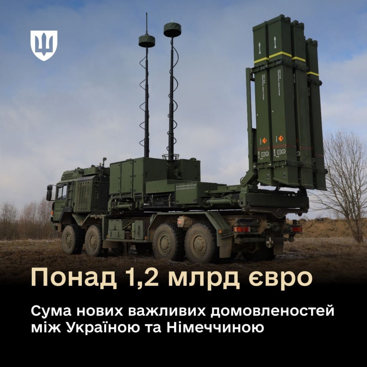 Український уряд підписав з німецькими партнерами низку нових важливих домовленостей на суму понад 1,2 млрд євро. Угоди передбачають, зокрема, довготермінове постачання запасних частин до систем Patriot. Це дозволить швидше ремонтувати, модернізувати та відновлювати наявні комплекси ППО. Про це міністр оборони Денис Шмигаль 17 грудня повідомив у Telegram.
