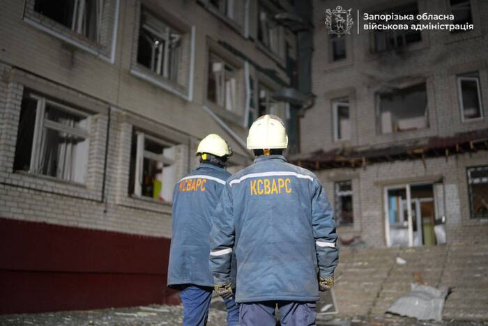 Последствия удара российского дрона по Запорожью, фото: Запорожская ОВА