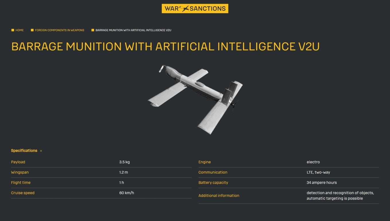 Як відомо, V2U — це російський баражуючий боєприпас, який оснащений штучним інтелектом для автономного пошуку та ураження цілей. БпЛА здатний працювати без постійного зв’язку з оператором та в умовах дії РЕБ. Важить такий безпілотник 3,5 кг, а в повітрі може перебувати до години часу.