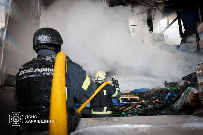 Внаслідок одного з влучань по території цивільного підприємства сталися руйнації та пожежа складської будівлі: