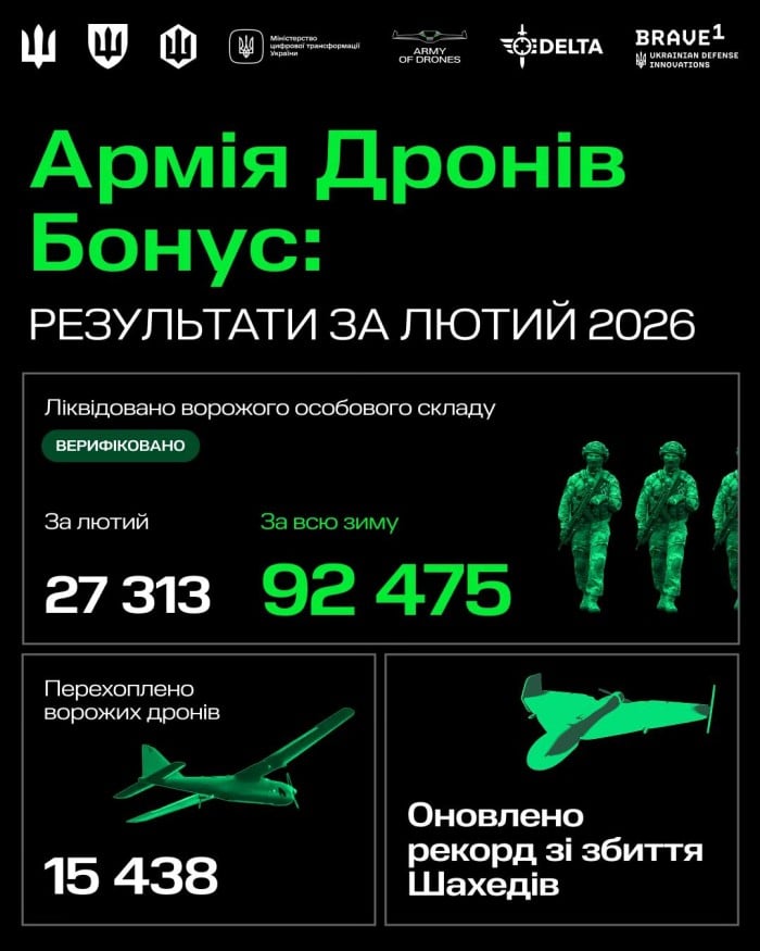 Зазначається, що лише за лютий українські військові вразили 27 тис. 313 окупантів — це 975 ліквідованих росіян щодня.