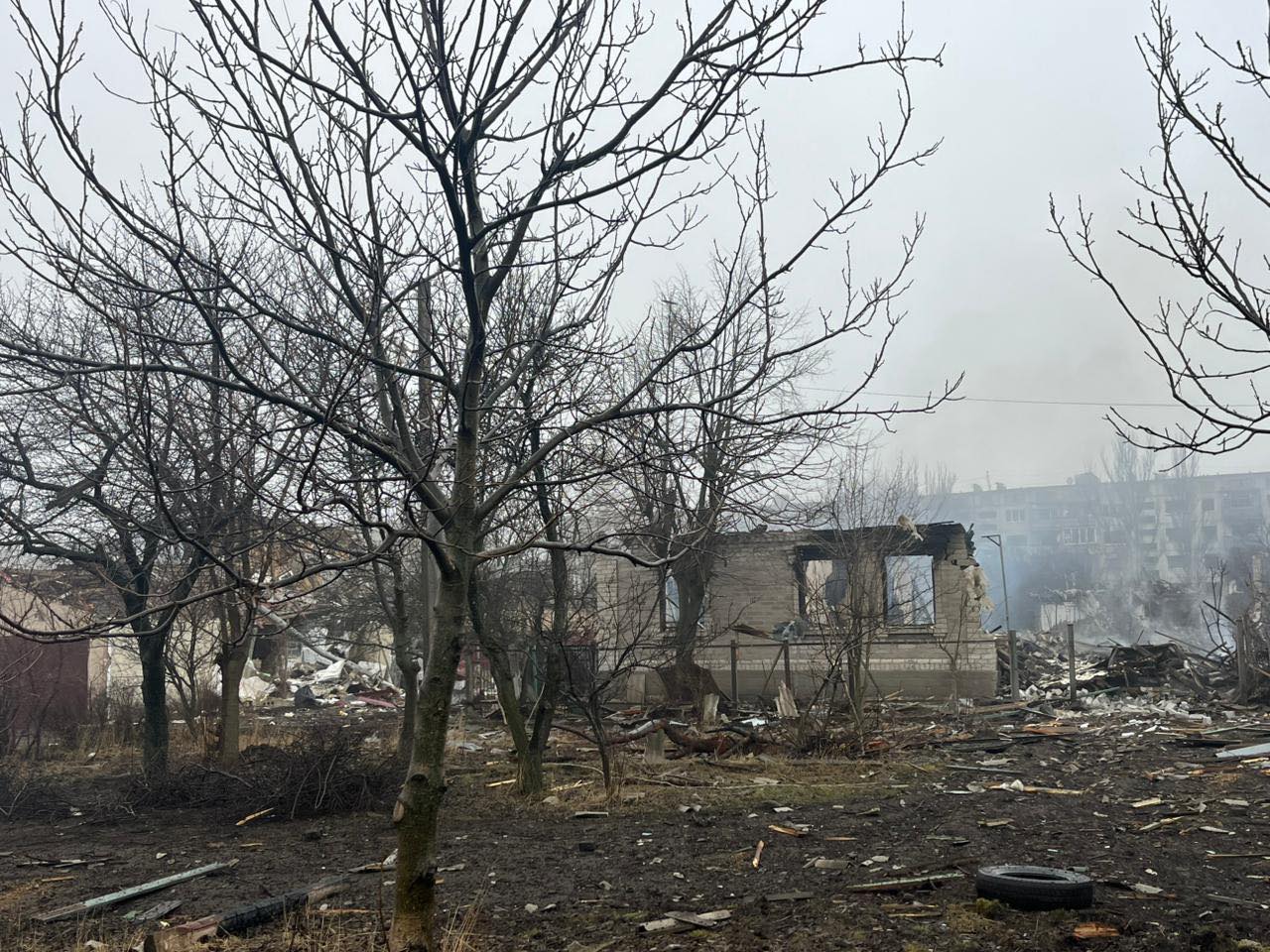 На місці обстрілу працювали рятувальники та комунальні служби, а також проводилися аварійно-відновлювальні роботи.