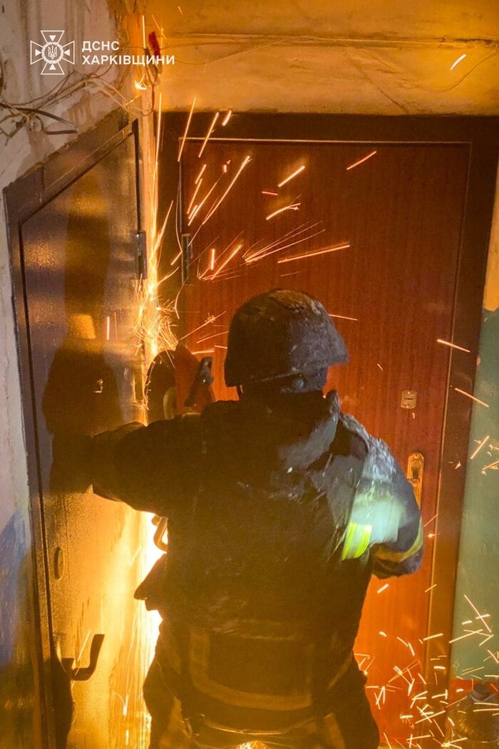 Внаслідок атаки зайнялись квартири на другому, третьому та четвертому поверхах чотириповерхового житлового будинку. Про це повідомляє прес-служба ДСНС.