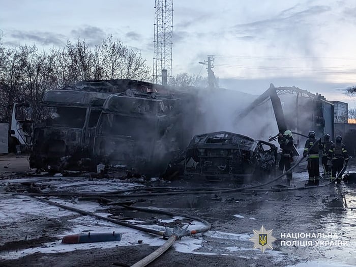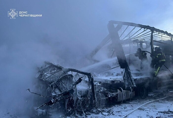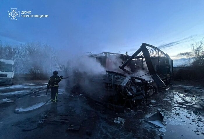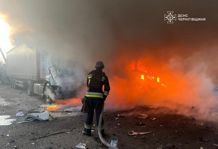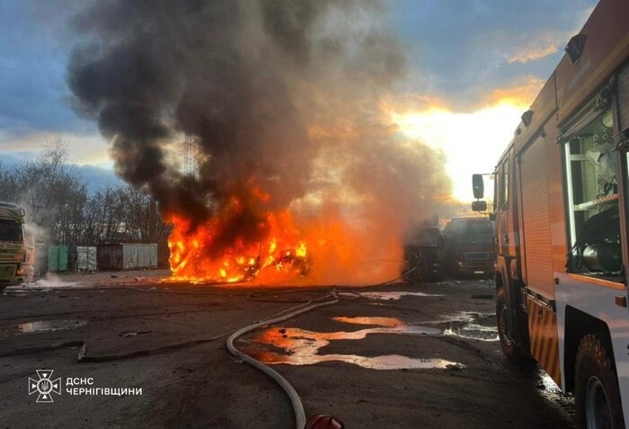 Российский беспилотник ударил по частной автостоянке в Черниговской области, загорелись грузовики (ФОТО)