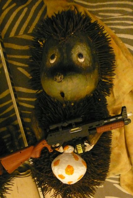 Отремонтированный «Ежик» станет более воинственным. Теперь в лапках, помимо привычного узелка, он будет держать автомат.
