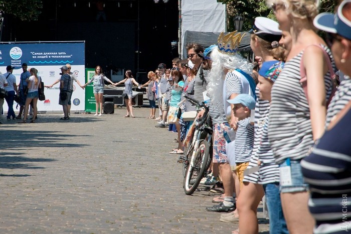 https://racurs.ua/n73051-nas-mnogo-i-vse-v-telnyashkah-odessity-ustanovili-polosatyy-rekord-foto.htmlРакурсПо информации местного сайта «Думская», в живой круг на Дерибасовской выстроилось 293 человека, что составило 380 м.