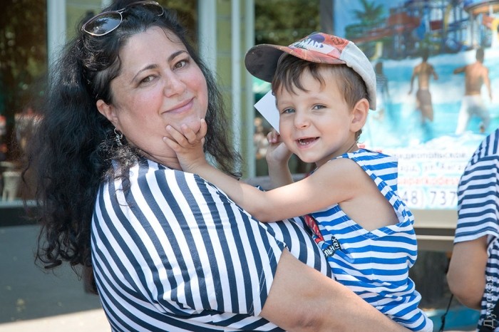 По словам журналистов, участники приходили целыми семьями, одетыми в полоску.