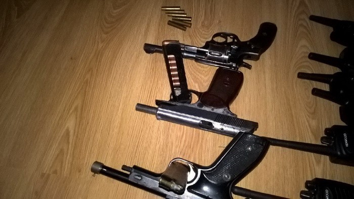 «Во время обысков силовики изъяли девять пистолетов и два револьвера разных систем, четыре незарегистрированных охотничьих ружья, автомат Калашникова, самодельный карабин, один кг тротила, 11 бронежилетов, балаклавы и большое количество патронов различного калибра. Также изъято 11 раций, три из которых дальнего радиуса действия, и другую военную амуницию», — говорится в сообщении спецслужбы.