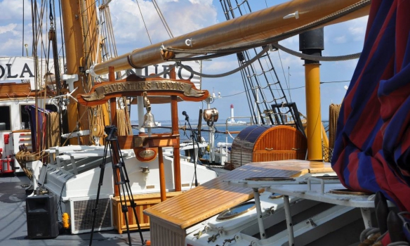 На борту судна находятся курсанты Школы старшинского состава, которые проходят традиционную учебную практику после окончания первого курса.