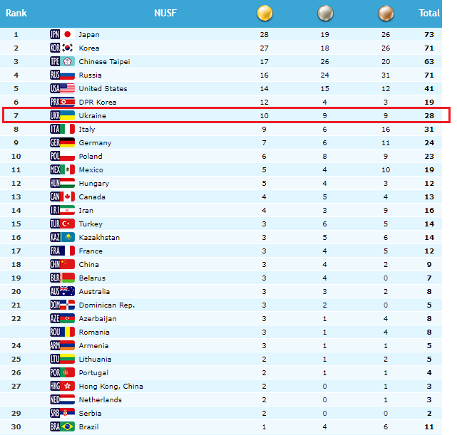 Всемирная Универсиада-2017: украинские спортсмены завоевали десятое «золото»