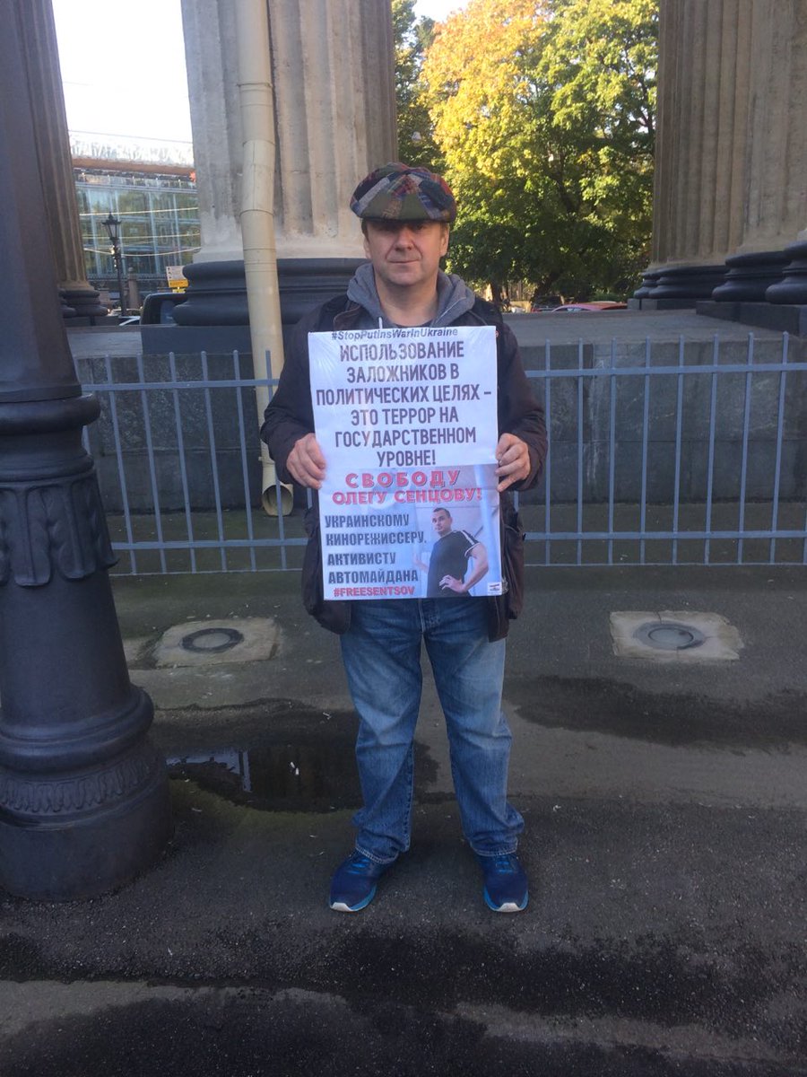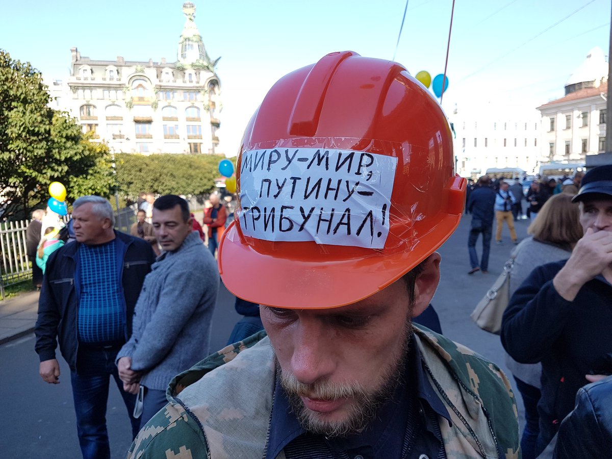 Некоторые из активистов держат в руках таблички с надписями, осуждающие действующую политику Кремля и лично президента РФ Владимира Путина. Отдельные митингующие требуют освобождения украинских политических заключенных, в частности режиссера Олега Сенцова.