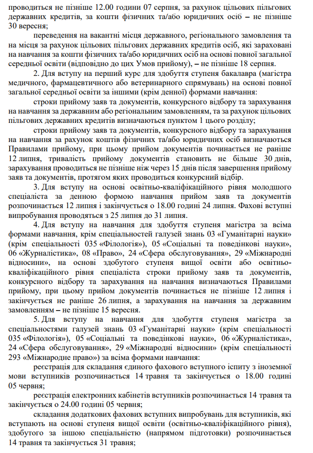 Прием заявлений и документов начнется 12 июля. Лица, которые будут поступать в вузы на основе собеседования, вступительных экзаменов или творческих конкурсов, смогут подавать заявления до 20 июля.