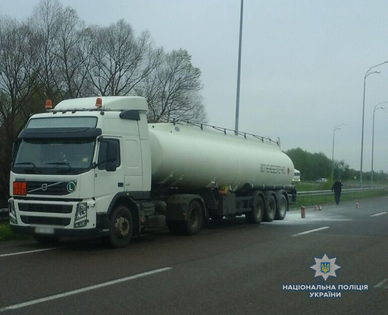 Виявивши на трасі зазначену автоцистерну, наряд групи реагування патрульної поліції направив її за межі населеного пункту, щоб не наражати на небезпеку інших водіїв.