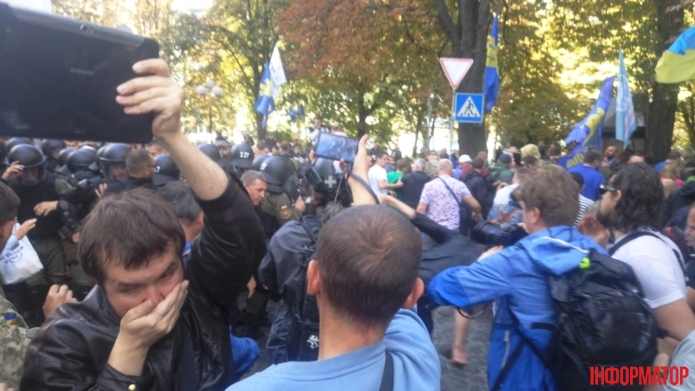 Серед постраждалих також журналісти каналу «Ньюзван»: учасники акції протесту закидали їх яйцями.