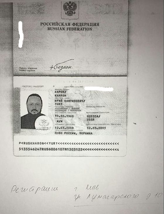 «На фото — російський паспорт людини, котра хоче позбавити нас томосу. Іноземний громадянин Юрій Самуїлович Харон, котрий в Україні легендований під іменем „отець Гедеон“, вирішив через суд зупинити просування України до отримання права на власну православну церкву», — написав Луценко, продемонструвавши відповідний знімок.