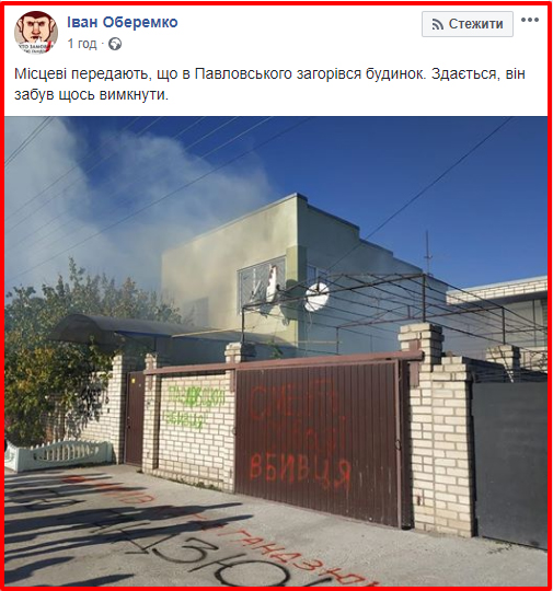 Також активісти прийшли до будинку Ігоря Павловського, якому закидають причетність до вбивства. Ймовірно, що в двір будинку жбурнули димову шашку, а паркан розмалювали.