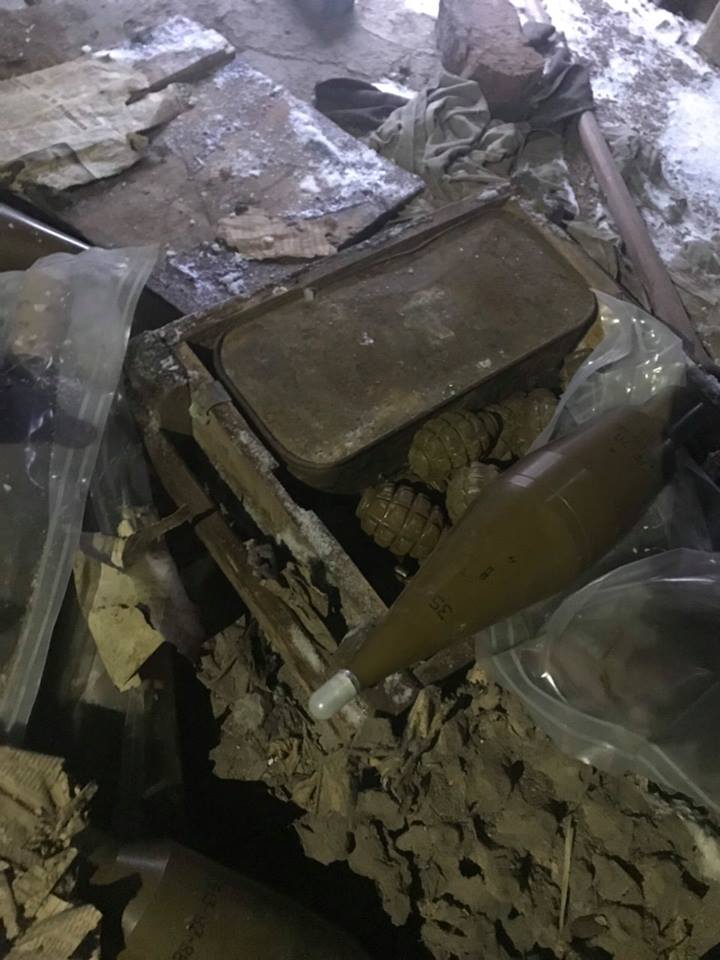 Арсенал на горищі одного із нежитлових будинків 25 січня виявили поліцейські в ході проведення оперативних заходів щодо виявлення та документування незаконного обігу наркотичних засобів, зброї та вибухівки. Про це повідомив прес-центр штабу операції Об'єднаних сил у Facebook.