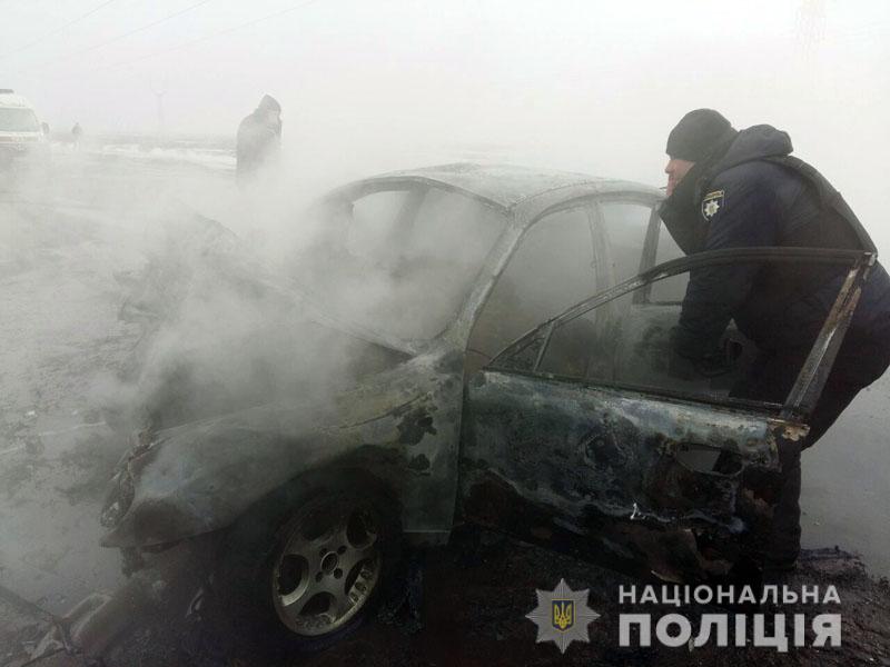 Правоохоронці встановили, що водій автомобіля «Шевроле» здійснював обгін та не впорався з керуванням. Це призвело до зіткнення з «Дєу Ланосом», від удару автівка загорілася. Про це повідомила прес-служба Головного управління Національної поліції в Донецькій області.